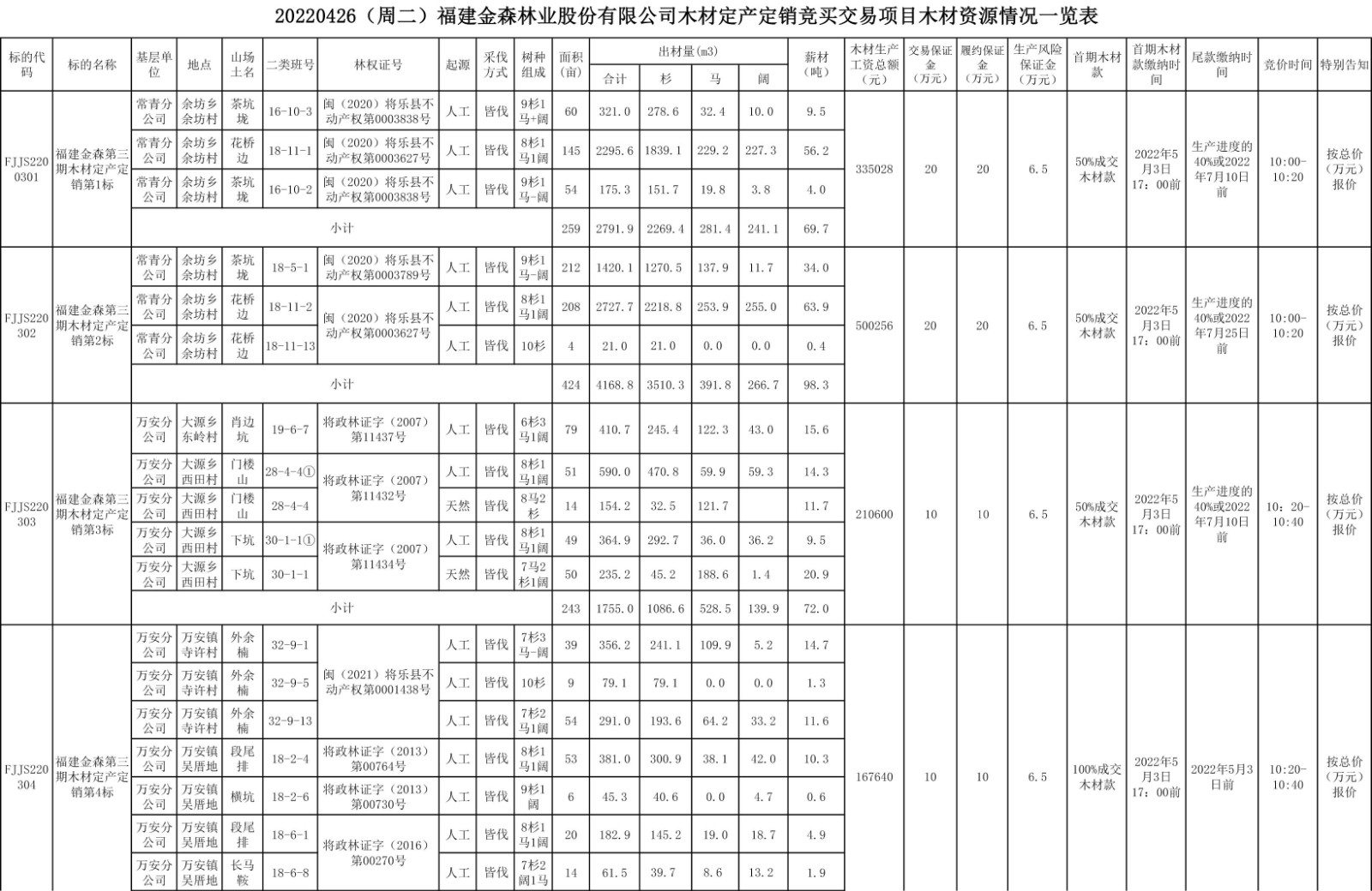 20220426(周二)福建金森林業(yè)股份有限公司木材定產(chǎn)定銷競(jìng)買交易項(xiàng)目