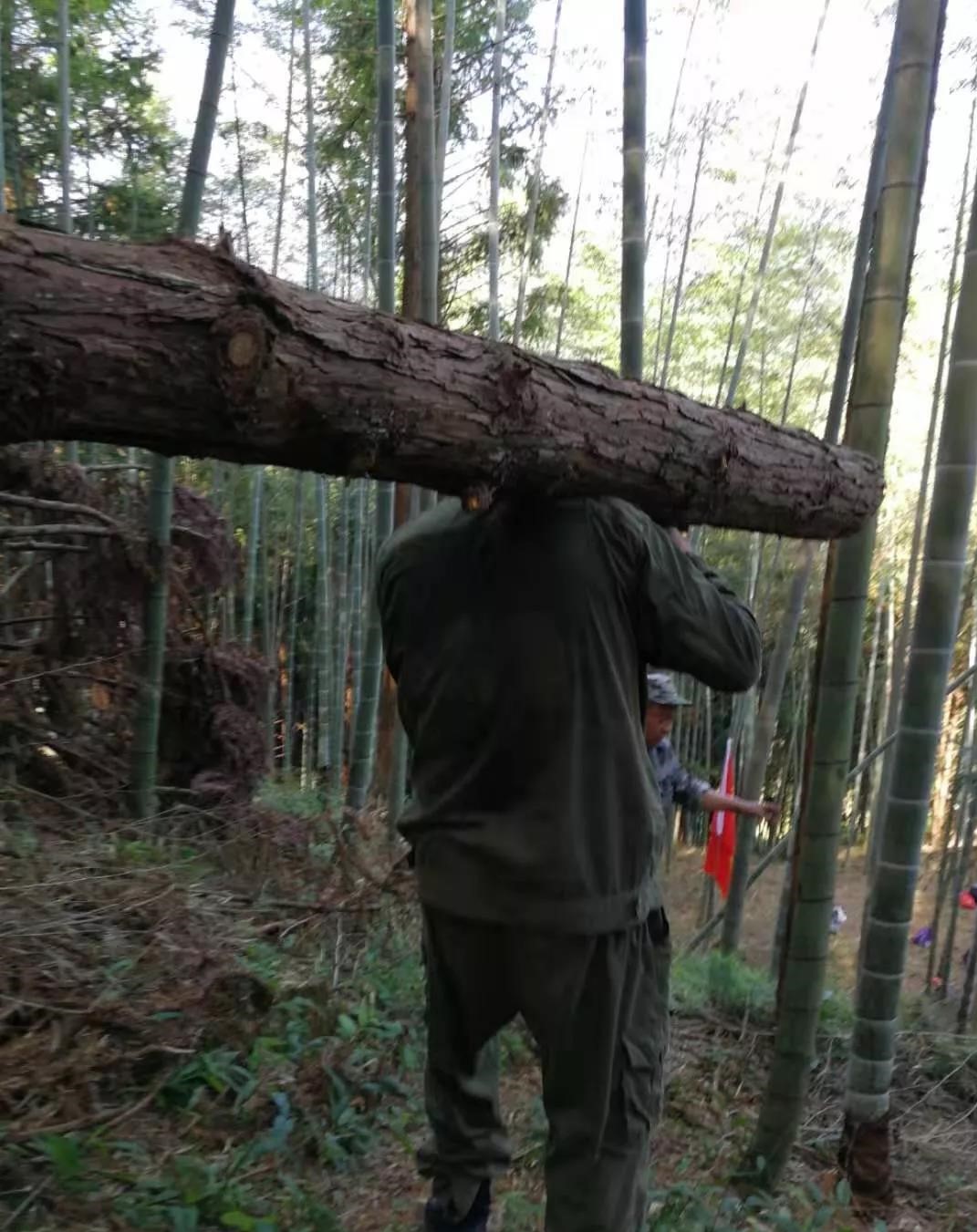 此次清理材主要分布在山脊上,入山無(wú)路,而且距離公路較遠(yuǎn),運(yùn)輸林木必須穿過(guò)竹林從山頂上一路翻滾到山腳下,再用肩抗到公路,清回難度較大,為保證公司資源不流失,森保部退役軍人自行義務(wù)清材,活動(dòng)中全體老兵斗志昂揚(yáng)、不怕炎熱酷暑、戰(zhàn)勝重重困難,充分發(fā)揚(yáng)出軍人的優(yōu)良傳統(tǒng)和吃苦耐勞的作風(fēng),展現(xiàn)了退伍軍人永葆本色的風(fēng)采,傳導(dǎo)著為公司發(fā)展無(wú)私奉獻(xiàn)的精神:穿上軍裝,我們是捍衛(wèi)和平的勇士;脫下軍裝,我們是企業(yè)發(fā)展的脊梁,讓我們一心向陽(yáng)跟黨走,永不褪色做先鋒!